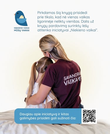 Ši knyga ne tik džiugina akį ir širdį, bet ir neša gerumą: už kiekvieną parduotą egzempliorių 1 euras skiriamas organizacijai „Niekieno vaikai“, padedančiai tiems mažiesiems, kuriems labiausiai reikia šilumos ir meilės.